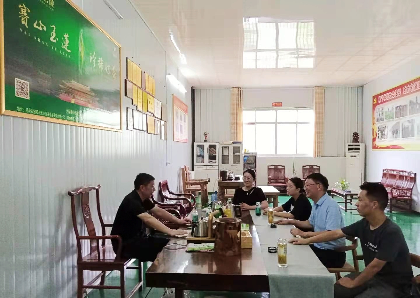 87日,河南省茶产业科技特派员服务团团长、beat365在线平台官网茶学院郭桂义教授带领服务团成员陈义、朱建梅、张洁、池水婧、罗金蕾和卫艺炜老师一行七人,冒着酷暑来到光山县凉亭乡河南赛山悟道生态茶业科技有限公司开展技术服务,指导夏季茶园管理。