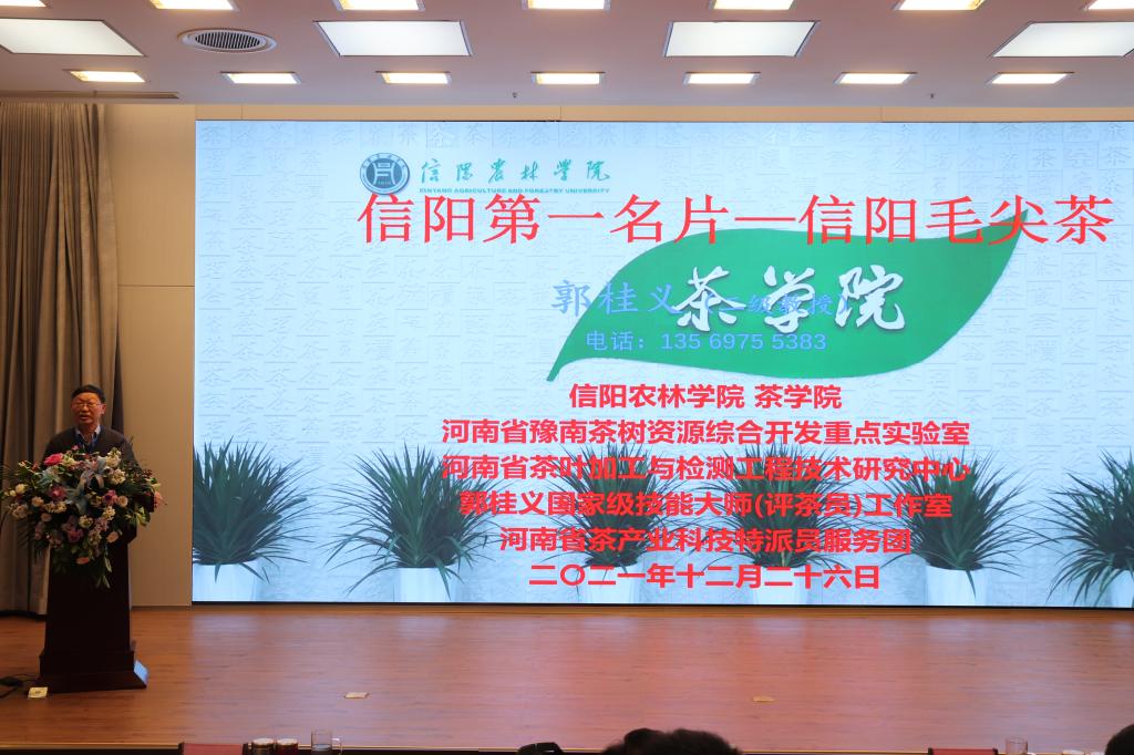 河南省茶产业科技特派员服务团团长、国家级技能大师工作室领办人、茶学院院长、二级教授郭桂义应邀进行了《信阳第一名片——信阳毛尖茶》的讲座,信阳师范学院原文学院党委书记、院长吴圣刚教授讲解了唐代王敷的《茶酒论》、信阳市社科联原常务副主席刘向阳副研究员作了题为《中国传统茶文化的发展历程及其精髓》的讲座、高级勾调师张青作了题为《百年辉煌——茅台酒与毛尖茶》的讲座,共同组成茶文化大讲堂的讲座活动。