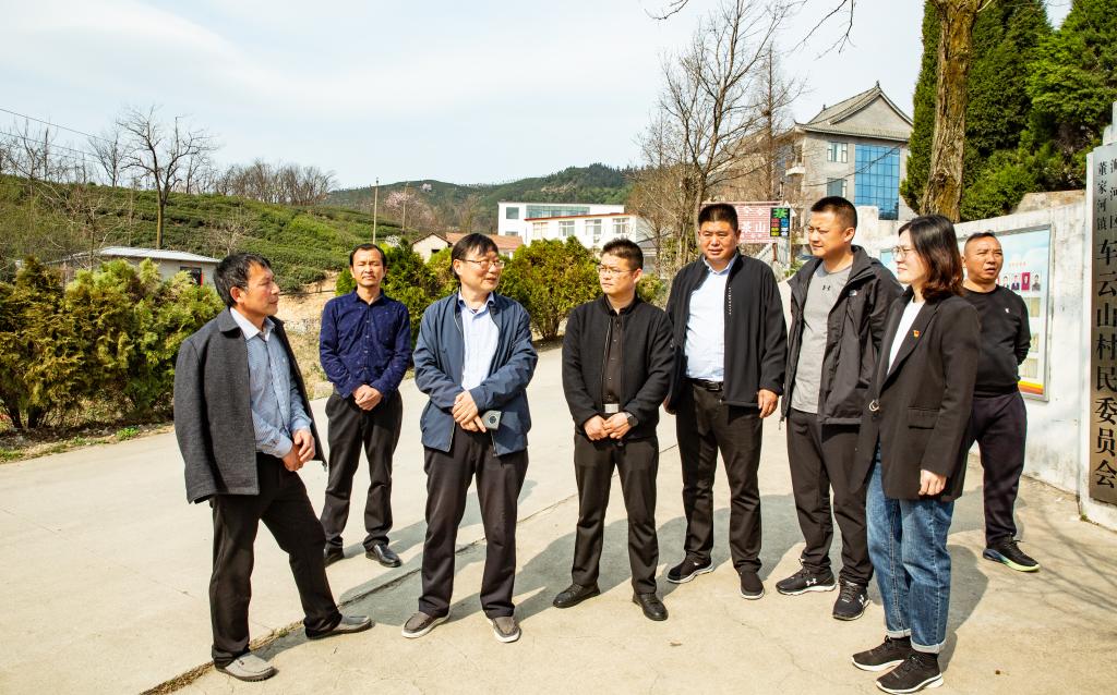 郭教授在车云山村党支部书记、村委会主任罗超、原村委会主任周家军、信阳车云顶峰茶叶科技有限公司伍德军等带领下考察了茶叶基地的茶园,进入茶园调研茶树长势情况,针对部分茶园土壤质地较差、瘠薄、肥力不够的特点,建议加强茶园管理,部分茶园修剪不到位,一定要认真修剪、培养良好树冠,提高茶叶产量和效益,郭桂义团长等还针对茶园管理与现状,结合不同茶树品种当前生长状态,对栽培管理进行了技术指导,最后郭教授还提醒茶农茶企及时关注天气预报,尽早做好预防倒春寒的准备。