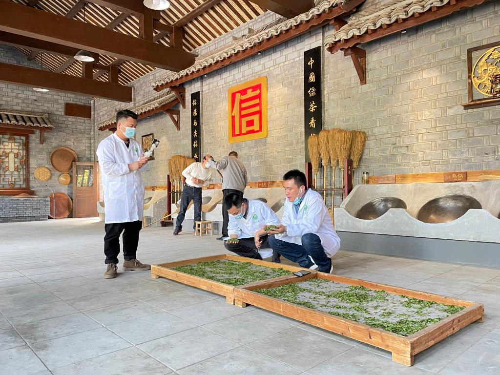 服务团在beat365在线平台官网的产学研合作基地文新茶叶科技园区,考察了手工炒茶房、机械化生产车间、文新茶村。针对文新引进的信阳毛尖特色智能化生产线,信阳红茶生产线的生产量、参数设置与茶叶品质关系,机制与手工信阳毛尖品质差异,服务团团长郭桂义教授与总负责设备工程师进行交流并提供自己的一些建议和看法。随后,服务团前往何家寨,了解了何家寨茶园采摘情况,与一些茶农进行了交流,考察了一些农户作坊,并对其生产的信阳毛尖进行了品鉴,针对如何更进一步改变参数,提高品质,充分发挥何家寨的优势地理下高山出好茶的品质特点。最后,服务团来到信阳农林学茶学院实习基地嘉木饮,考察了直播间、茶文化馆与生产车间,并与在此就业的学生们进行了交流。