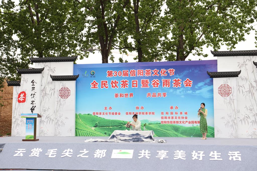 茶学院协办的第30届信阳茶文化节全民饮茶日暨谷雨茶会在信阳国际茶城举行