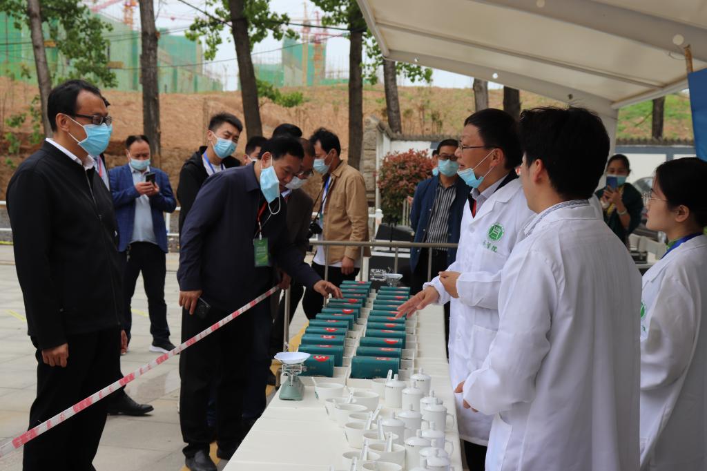 河南省茶产业科技特派员服务团团长郭桂义教授带领团队成员王杉、朱尧、王晶晶、卫艺炜等老师组成茶叶感官审评团队使用近5小时以客观公正的态度、采用专业的国家标准茶叶感官审评方法对大众喜爱的信阳毛尖品鉴评比49个茶叶样品进行了盲评打分。郭教授在盲评时接受采访说到,评茶和品茶不一样,评茶是用标准统一的专业审评用具、茶水比、冲泡时间,以及统一的方法,客观公正地评价茶叶品质,可以更好的指导茶农、茶企茶叶生产。