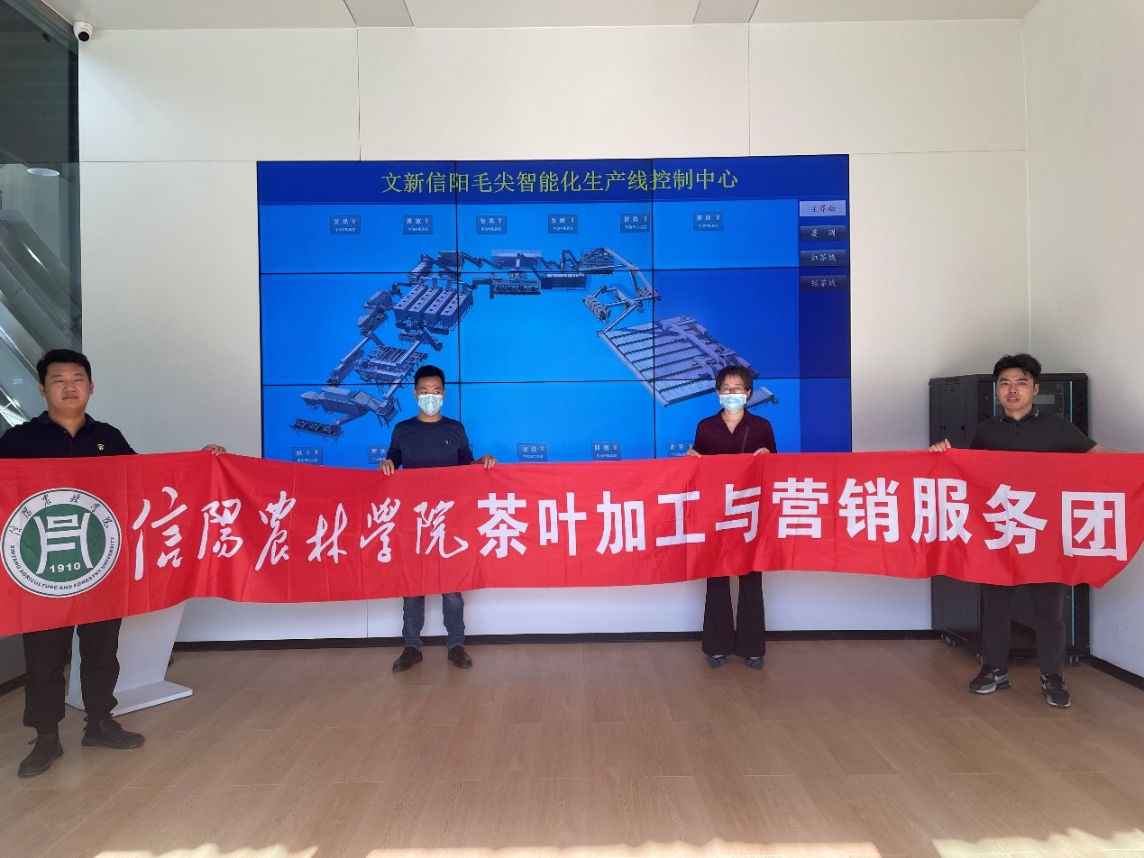 在文新公司,服务团一行人观看了信阳毛尖全自动化生产线以及信阳红茶全自动生产线。服务团表示,文新公司作为信阳市茶产业龙头企业,拥有先进的设备和加工技术,在信阳毛尖的宣传和发展上有着重要的作用,今后beat365在线平台官网和文新公司更应加强合作,互相交流,学院派专业教师驻厂学习实践,公司可派骨干员工进校学习理论,探索更好的信阳毛尖和信阳红茶加工技术与营销模式,加强校企融合,加强产学研结合,以科技助力河南茶叶提质增效为宗旨,协力推进大别山老区茶产业发展,助力老区振兴。(撰稿人:孔亚帅 审核人:陈义)