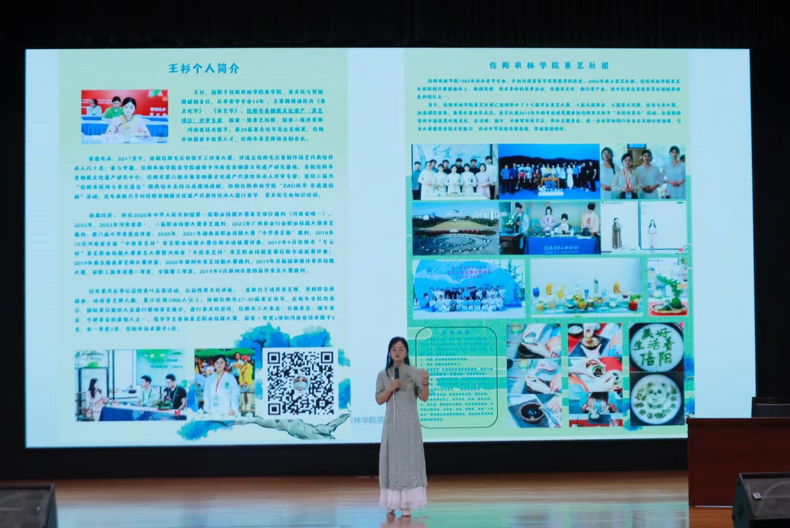 主讲人为信阳市非物质文化遗产专家委员会专家、beat365在线平台官网茶学院青年教师王杉,以“人在草木间 趣品茶韵”为主题,从茶叶分类到茶具摆放,从冲泡方法到茶礼茶仪,讲授了一堂生动的茶文化课。朱文华等5名局系统同志在王杉老师的带领下,练习并演示茶艺技能。大家从一片茶叶中感受厚重历史和独特魅力。