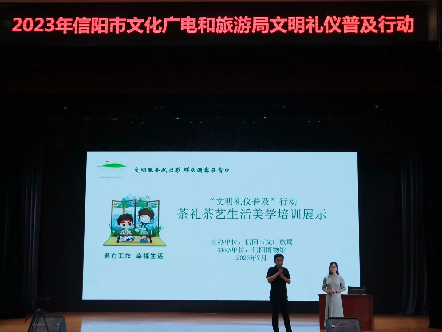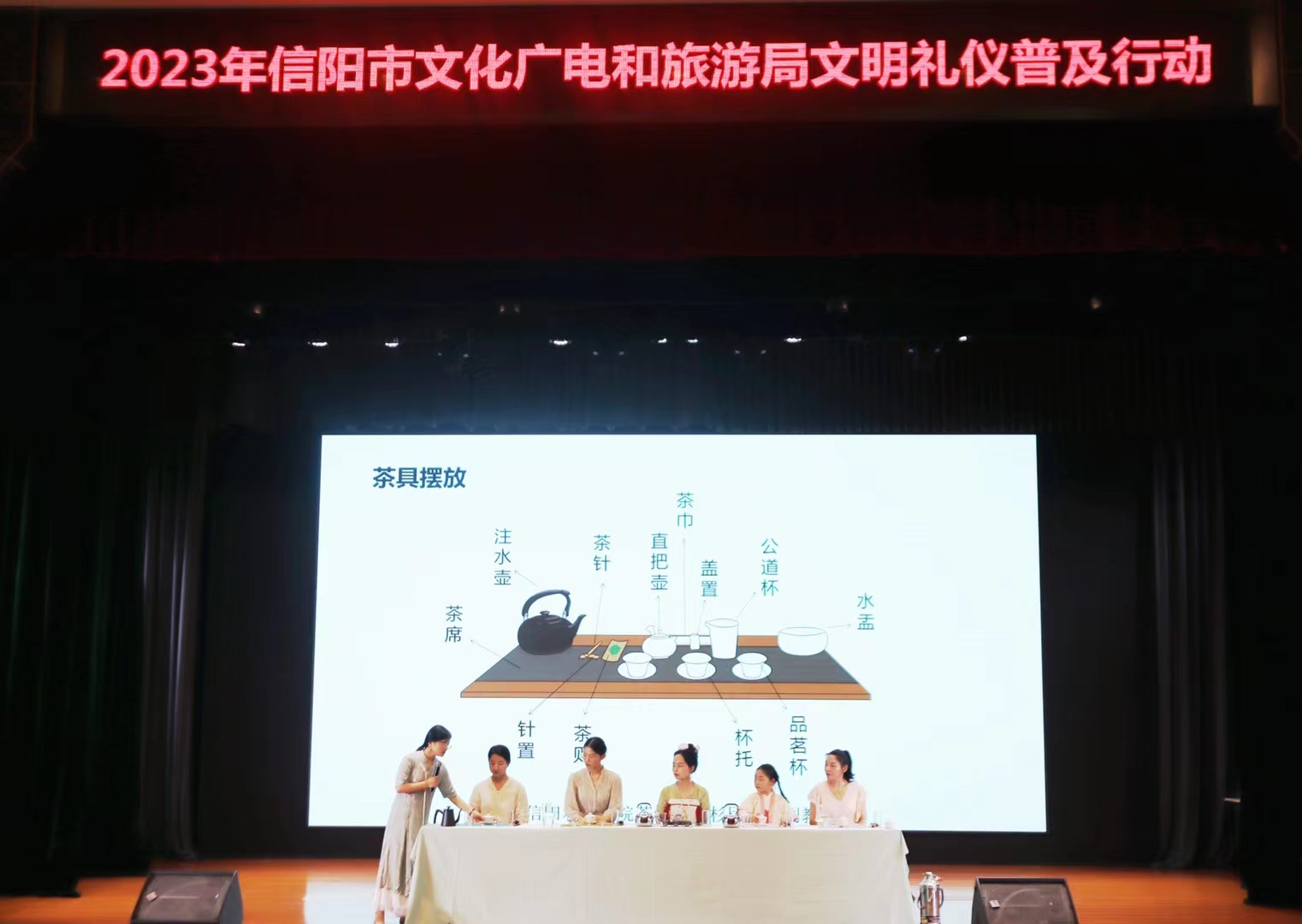 7月6日,信阳市文广旅局举办了一场别开生面的茶礼茶艺生活美学课,局系统100多名干部职工集中进行了一场茶文化熏陶。