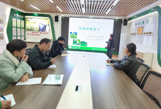 罗金蕾老师针对茶苗扦插不成功还开展了知识讲座,系统详细地讲解了茶苗扦插的技术要点及注意事项。讲座结束后参会人员进行了座谈交流。王利妍老师对茶树长势不均一茶园和不同管理模式茶园土壤进行取样收集,后续通过土壤养分分析等进一步开展科技服务与技术指导。最后,科技特派员服务团成员还实地考察了王湾茶场母本园,就生态茶园管理等进行了现场交流指导。