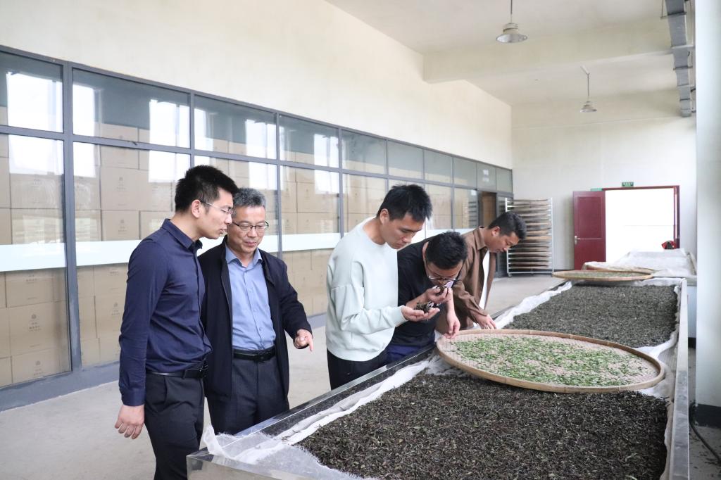服务队一行在桐柏县鑫茗农业有限公司等调研了茶叶清洁化生产车间,了解公司生产的茶产品,并与企业负责人黄钲荃等就茶叶开采时间、鲜叶采摘标准、茶叶生产量、茶叶质量等相关情况进行了沟通交流。通过现场考察茶叶鲜叶萎凋情况,针对性解决企业在红茶和白茶生产过程中遇到的技术难题。服务队成员审评了公司前期生产的多批红茶和白茶样品,并对红茶和白茶品质给出了科学评价及建议。王广铭建议从鲜叶等级划分、加工过程把控、成茶品质鉴定等几个方面把关,做好做强桐柏茶。同时,建议该企业在茶叶生产过程中建立标准样品,有利于茶叶品质控制。接下来,服务队将继续集中技术力量优势为桐柏茶的生产和销售提供保障,不断增加企业和茶农经济收入。(撰稿:王晶晶/摄影:孔亚帅)
