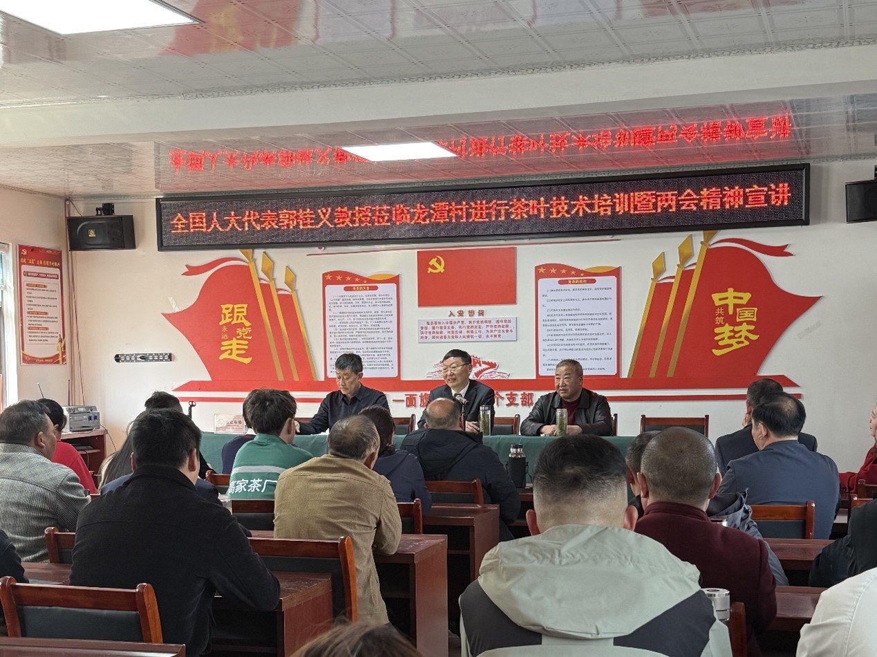 3月中旬,郭桂义参加完全国两会。从北京返信阳后,带着满满的收获与责任,即刻投身于向茶农们传达全国两会精神的工作中,力求将两会的最新声音和重要决策结合茶行业,原汁原味地传递到乡亲们的身边。服务团分别在信阳市夏家村、黄庙村、白龙潭村等地结合政府工作报告指出的“做好土特产文章”,先是指导茶农利用茶文化、茶科技等做好“茶”这个土特产的文章。同时,走进茶山,结合茶叶标准化加工与品质提升,从科学育苗到土壤管理,从绿色防控到修建采摘给茶农讲解茶园管理、春茶采摘等知识,推动农业增效益。茶农叶茂初激动地说:“我对服务团‘茶教授’讲的关于茶产业、茶科技的知识很感兴趣。今天我满载而归,以后也要多向服务团专家请教,种好茶,通过自己的双手创造美好生活。”