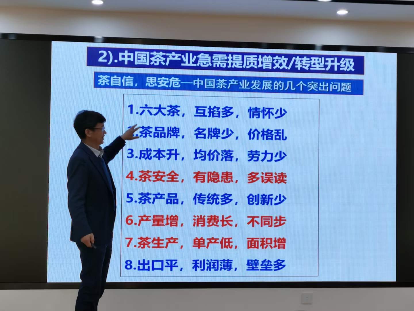 王岳飞教授在报告中简要介绍了国内外茶产业发展现状、茶的起源及茶文化影响力、茶叶科技与产品开发研究进展、茶叶健康及保健作用研究进展以及如何科学健康饮茶,重点论述了茶产业与茶科技的未来发展趋势,从良种创新、栽培技术创新、茶叶加工技术创新、基于中国茶成分之茶科技产品创新、茶叶功能成分产品开发、茶花类产品研究、其他创新茶产品实例共七个方面做了系统阐述。