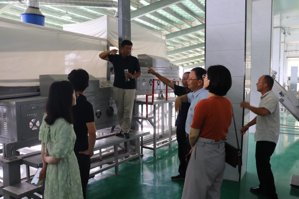专家团队先后深入固始县其才茶业有限公司、河南九华山茶业有限公司、河南仰天雪绿茶叶有限公司与河南五尖山茶业有限公司进行实地考察调研,分别考察了企业的信阳毛尖加工生产线,察看各企业的杀青工艺、做形工艺以及干燥工艺,并感官审评了信阳毛尖的样品。专家团队发现固始县信阳毛尖的杀青方式多数采用多功能杀青理条机与微波杀青机相结合,此方式有效改善了杀青叶的色泽,现未解决的问题为成品茶存在青气。专家团队针对此问题,与各企业负责人进行深入交流,详细记录了各企业的杀青工艺参数与干燥工艺参数。郭桂义教授针对青气问题提出在其加工参数的基础上适当提高毛火温度,同时使用红外测温仪实时监控加工过程的实际温度,为后期提升信阳毛尖品质的实验提供了方向,落实了大别山区的信阳毛尖品质提升与示范工作。