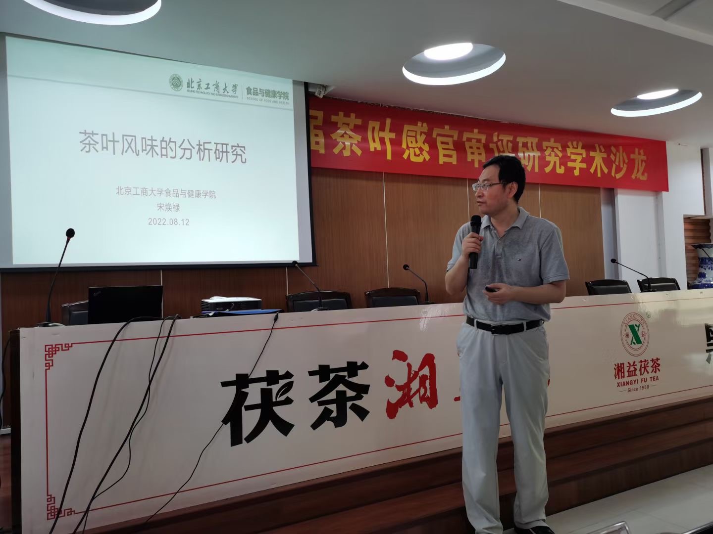 开幕式于8月12日上午进行,由中国茶叶学会茶叶感官审评与检验专业委员会副主任委员兼秘书长刘栩担任主持,随后的学术报告由中国茶叶学会副理事长、湖南省茶叶学会理事长肖力争主持,中国标准化研究院首席研究员赵镭作了《FOOD SENSORY—研究主题、动态前沿》的主题报告,北京工商大学教授宋焕禄作了《茶叶风味的分析研究》的主题报告,广东省茶叶收藏与鉴赏协会会长、研究员陈栋作了《广东市场对"新老"黑茶的感官品质认知》的主题报告,湖南农业大学教授黄建安作了《湖南黑茶感官审评茶汤制备方法与茯砖茶菌花香研究》的主题报告,报告内容对我院茶叶感官审评进一步发展提供了方向。