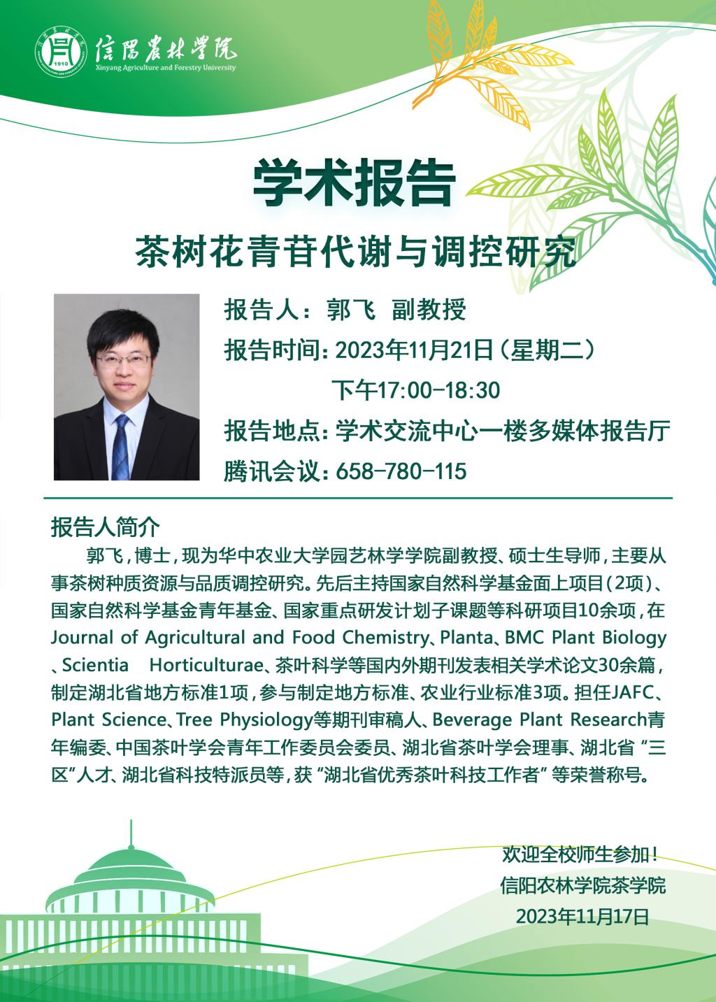 上一条:茶学院茶苑大讲堂学术报告预告—光谱技术在茶叶品质与安全指标快速检测领域的初步...