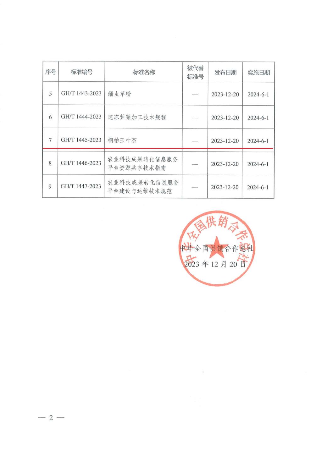 近日,中华全国供销合作总社关于批准发布《小茴香》等9项供销合作行业标准的公告(2023年第4号),由茶学院郭桂义教授、朱尧、王晶晶等主持起草的供销合作行业标准《桐柏玉叶茶》正式发布,该标准规定了桐柏玉叶茶的术语和定义、产品等级、要求、试验方法等,并将于202461日正式实施。