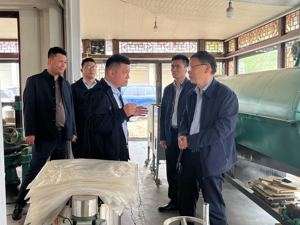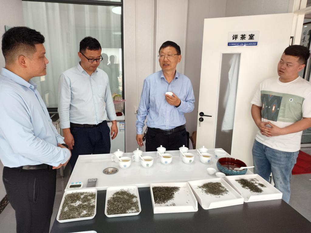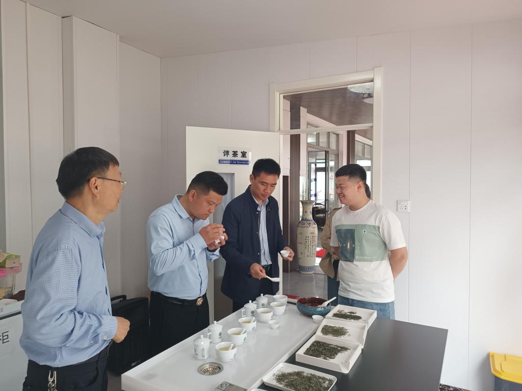 一行人在企业负责人的带领下,考察了茶叶品饮空间和茶叶加工车间,郭教授对企业发展历史、茶叶机械配置和茶叶加工工艺与负责人进行了沟通交流。随后,郭教授一行用自带的茶叶审评器具审评了企业的7款信阳毛尖茶样品,对茶叶品质的优缺点进行了探讨,对茶叶品质的改良和茶叶工艺的改进进行了指导,并对企业的规划和发展提出了一些意见和建议。(撰稿:王子浩/摄影:尹鹏)