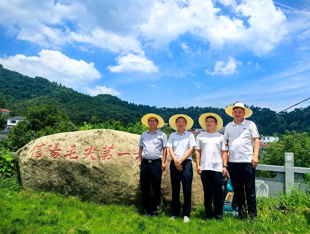 首先,郭桂义查看了在车云山村村委会由河南省茶产业科技特派员服务团提供技术和理论指导建设的“信阳毛尖茶第一村----车云山村”茶文化墙,文化墙主要展示了与车云山村有关的信阳毛尖茶文献对车云山信阳毛尖茶品质的评价,为“信阳毛尖茶第一村”这一品牌打造,提供支撑。郭桂义表示,找寻记载车云种茶、制茶的历史文献,挖掘车云山村茶文化历史,制作车云山茶文化展示展板等,能够有效促进车云山村茶产业的发展。