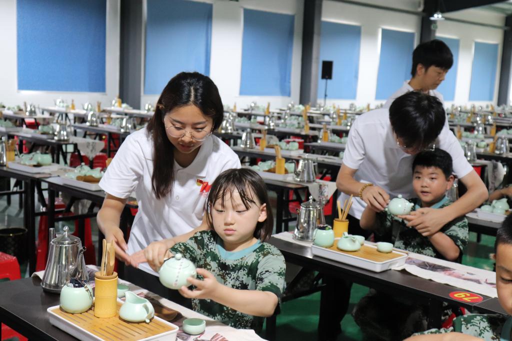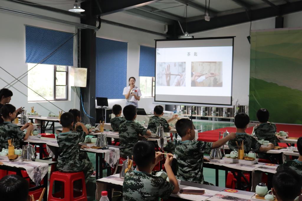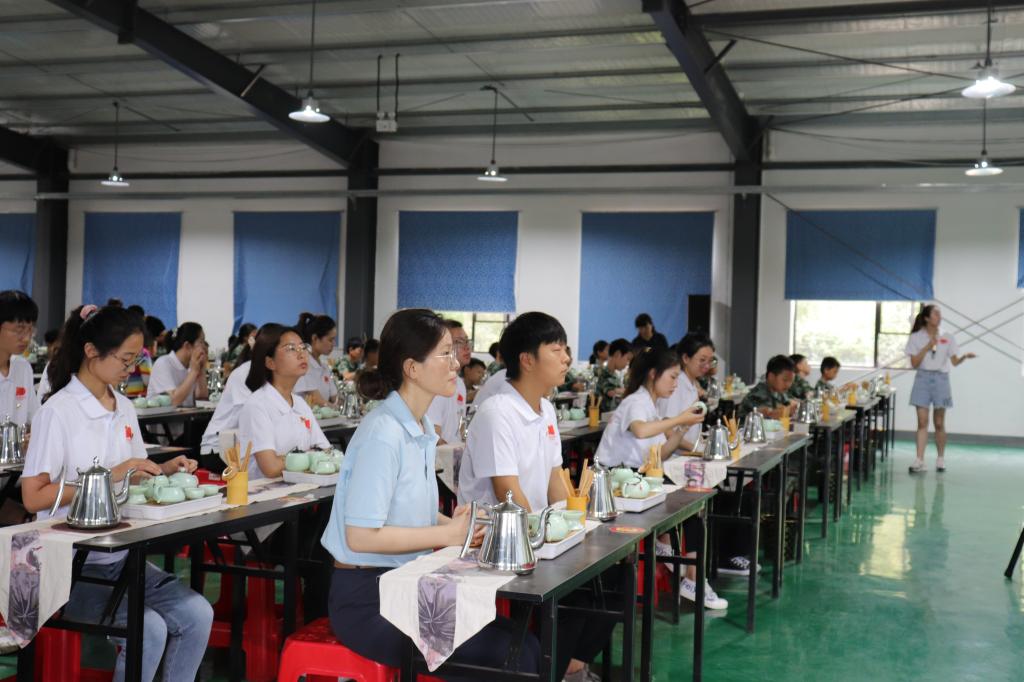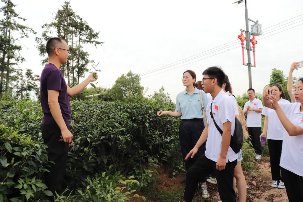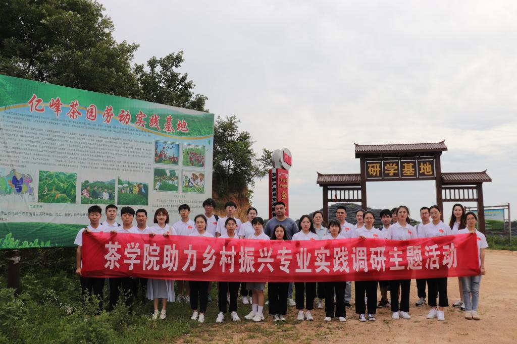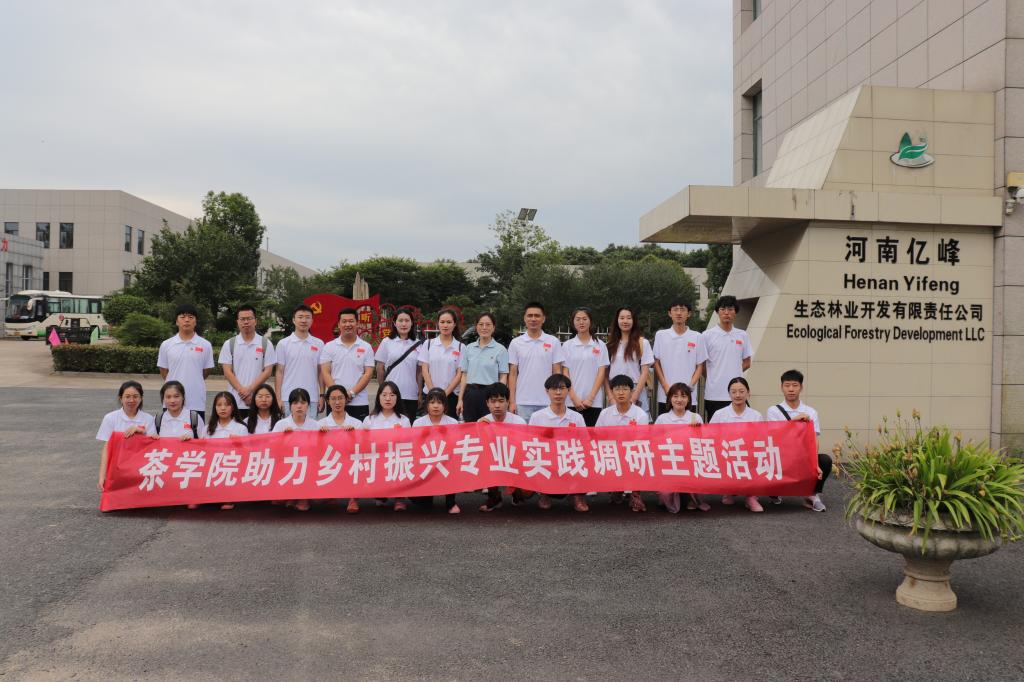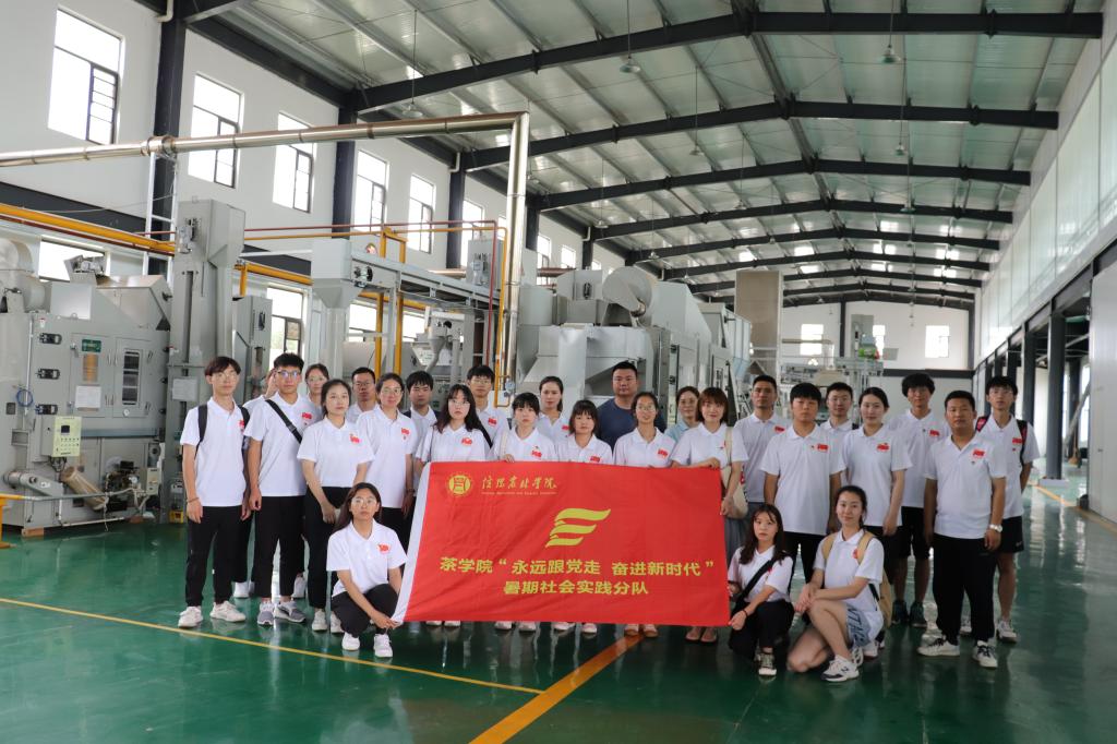 7月11日上午,茶学院党总支副书记朱建梅,团总支书记王子浩,专职辅导员丁岚、孔亚帅,专业教师王晶晶、卫艺炜、姜长岭带领学院暑期社会实践分队先后前往罗山河南亿峰生态林业开发有限公司,信阳申林茶业开发有限公司茶厂、茶园、研学基地开展专业实践调研,实地调研茶园管理、茶叶生产、茶厂设备配置、带动当地茶农增收等情况,并在河南亿峰生态林业开发有限公司为在公司研学的40余名小朋友展示茶艺,讲授茶具基本使用方法、泡茶流程及礼仪,专业实践结合茶企生产实际,茶艺技能应用实践。