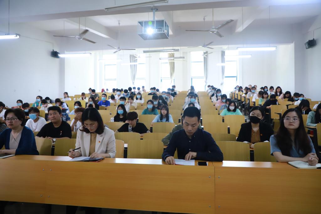 最后,朱建梅带领所有在场师生学习传达了习近平总书记在中国人民大学考察时的重要讲话精神,要求全院青年争做堪当民族复兴重任的时代新人,团总支、团支部要扎实做好联系和服务学院青年工作,要注重加强学院青年学子的学业历练、实践锻炼,不断提升新时代青年的社会责任感和时代使命感,希望全院青年要做社会主义核心价值观的坚定信仰者、积极传播者、模范践行者,向英雄学习、向前辈学习、向榜样学习,争做堪当民族复兴重任的时代新人,在实现中华民族伟大复兴的时代洪流中踔厉奋发、勇毅前进。