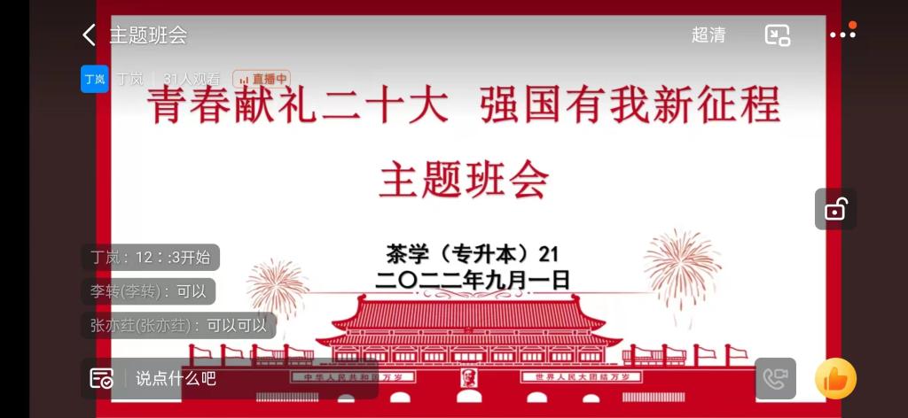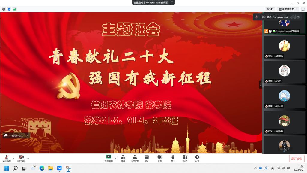 茶学院各班召开“青春献礼二十大,强国有我新征程”主题班会