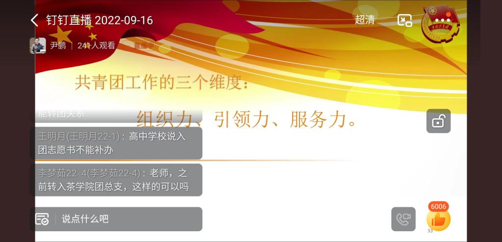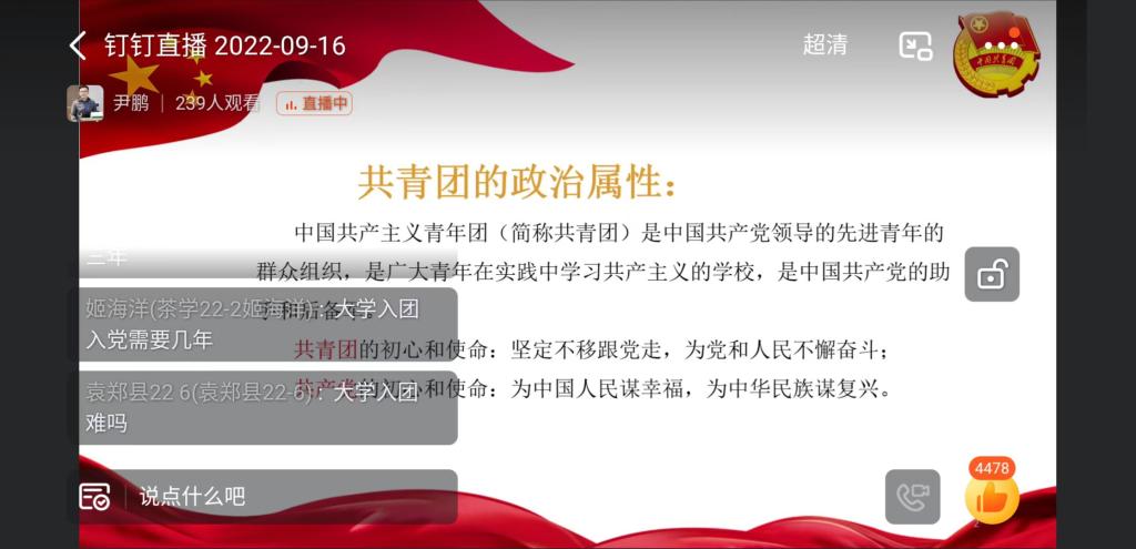 为进一步增强我院2022级新生对中国共青团的认识,引导广大青年学生团员树立远大理想,学习团的知识,做一名优秀团员,9月16日,茶学院在线上开展了2022级新生入学教育之做一名优秀团员,由院团总支书记王子浩主讲。