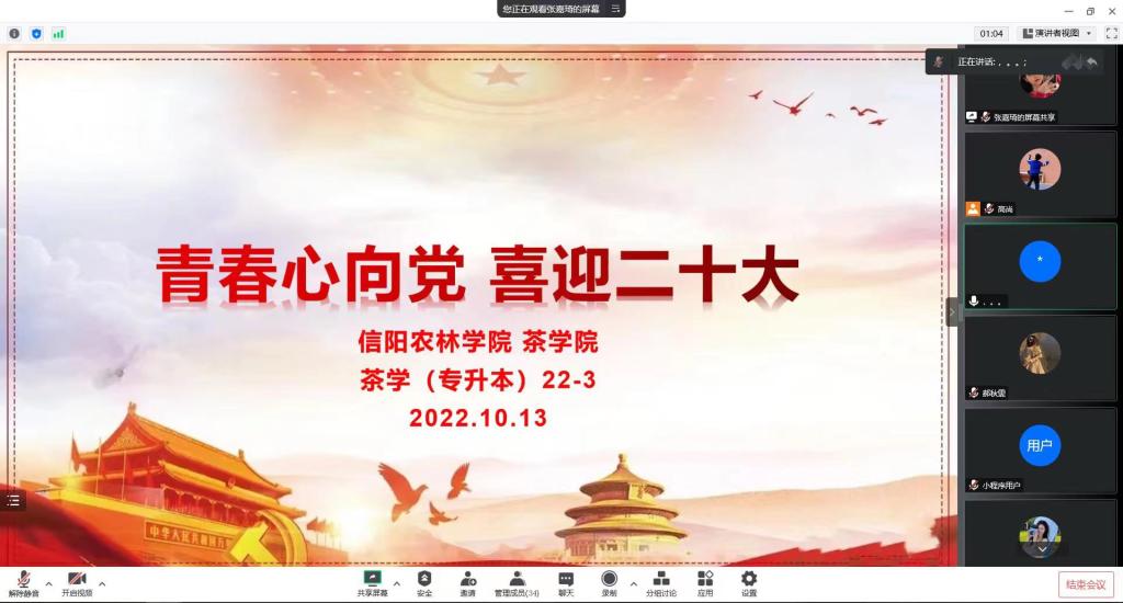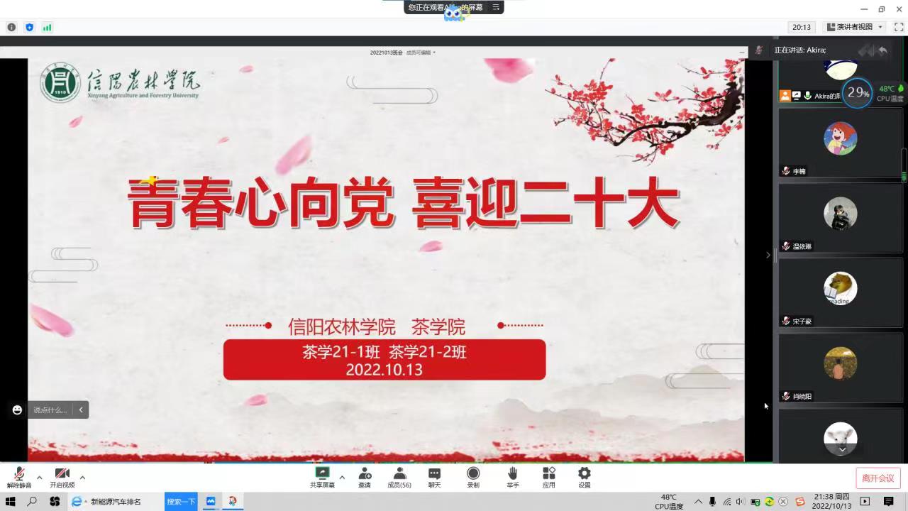 茶学院各班召开“青春心向党,喜迎二十大”主题班会