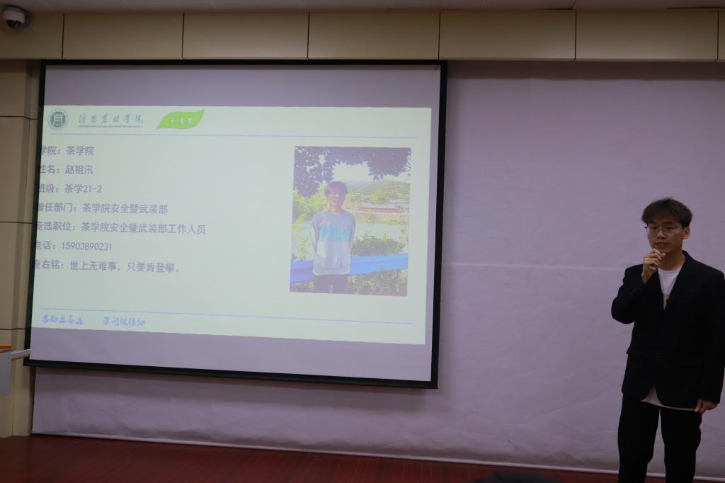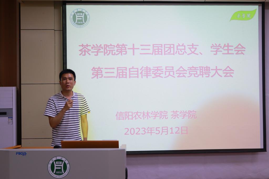 5月12日中午1点,茶学院在二教204举行了学院第十三届团总支、学生会,第三届自律委员会换届大会。茶学院团总支书记王子浩、全体辅导员、主要学生会干部及21-22级部分学生参加大会。