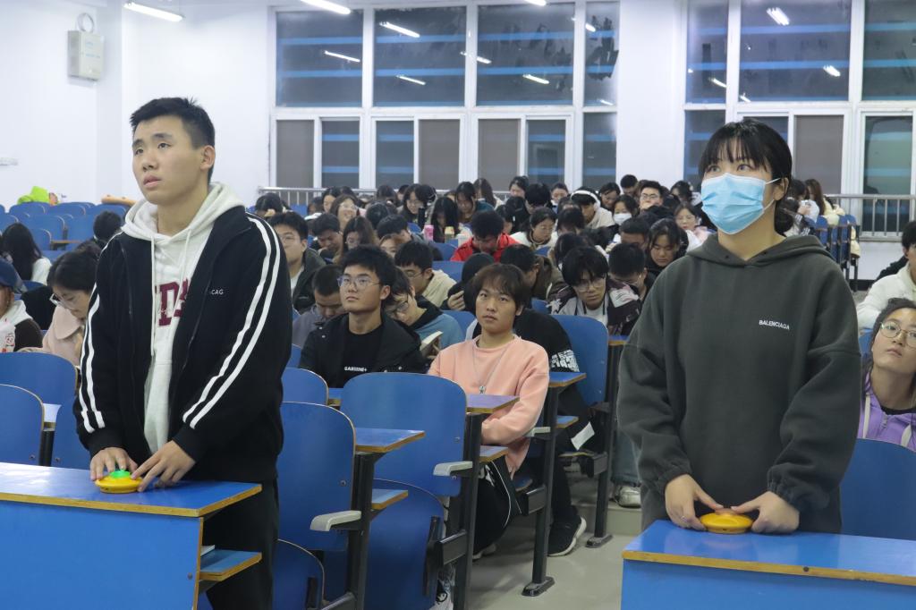 知识竞赛经过了近一个月的筹备和组织,前期报名小组多达29组,经过预赛和初赛,采用笔试的方式,最终竞选出8支队伍参与决赛。决赛分为团体赛和个人赛两项。团体赛分为四组,两两对决,经过必答题、加时赛、抢答题,产生四组优秀团队,获得团体赛第一、二、三等奖;个人赛从团体赛中推选优秀学生参加,采取必答和抢答的形式,最终产生优秀个人4名,分别荣获个人赛第一、二、三等奖。在紧张激烈的答题环节中,选手们遵守规则,屏气凝神、认真审题、仔细答题;观赛学生目不转睛、安静观看。在中场休息和暖场时间中,大家欣赏了由学生们带来的优美歌曲。