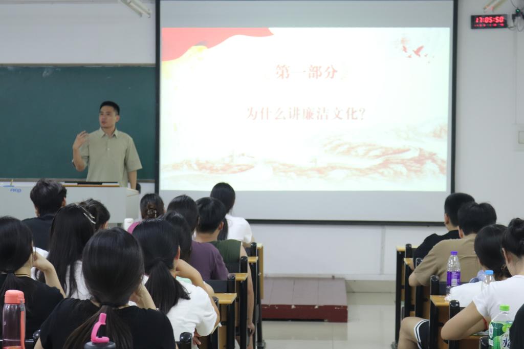 茶学院党总支副书记王子浩以“坚定理想信念,涵养高尚品德”为题开展了第一讲,他从党的二十大报告讲起,勉励同学们作为新时代的中国青年,要紧密团结在以习近平同志为核心的党中央周围,要把树立正确的理想、坚定的信念作为立身之本,努力成长为党、国家和人民所期盼的有志青年。王书记还向同学们讲解了廉洁教育知识,希望同学们在求学乃至职业道路上,坚守初心,做诚实守信的人。