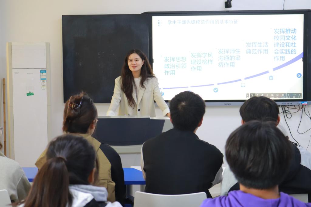 培训会上,丁岚老师重点讲解了学生干部先锋模范作用的基本特征以及学生干部应具备的基本素质,涵盖了思想道德、个人素质以及综合能力等方面。她希望学生干部们能够充分发挥“关键少数”的模范带头作用和引领示范的作用,成为学校与学生之间的桥梁与纽带。