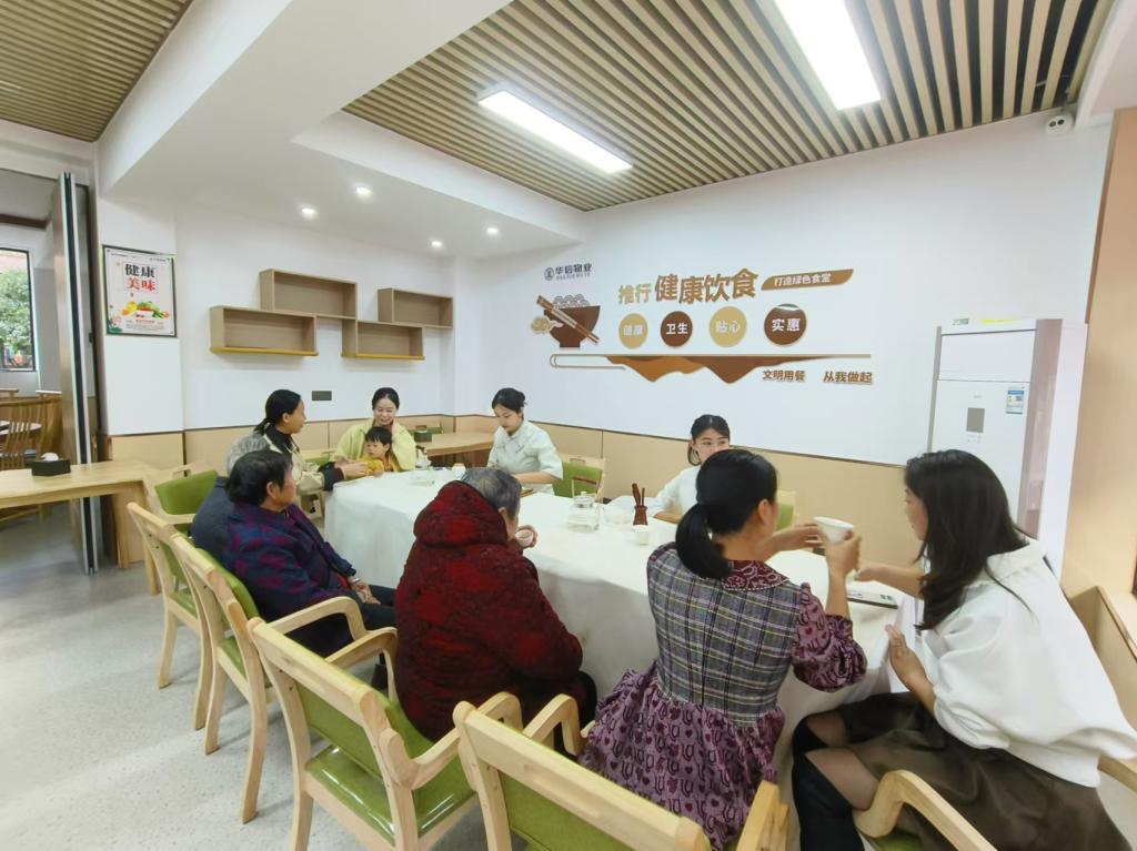 师生们走进了千禧社区食堂,与居民、社区工作人员开展了一场秋日品茗活动,学生们为社区居民讲解茶叶基本知识、茶与养生的知识。秋季天气干燥、气温下降,适量饮茶可以帮助人体滋润肺腑,缓解秋燥带来的不适,团队特带去了红茶,恰好适宜温补。