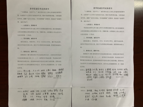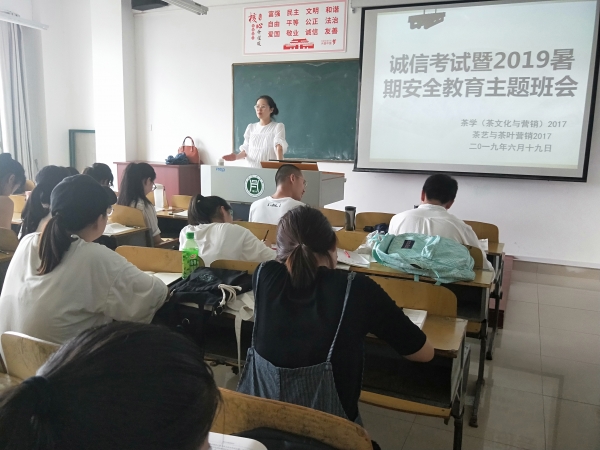6月,迎来了考试季,同学们已经步入紧张的复习状态,考试不仅检验同学们的知识水平,还折射出一个人的品德修养。值此之际,茶学院各班级辅导员进行了诚信考试暨暑假安全教育主题班会。