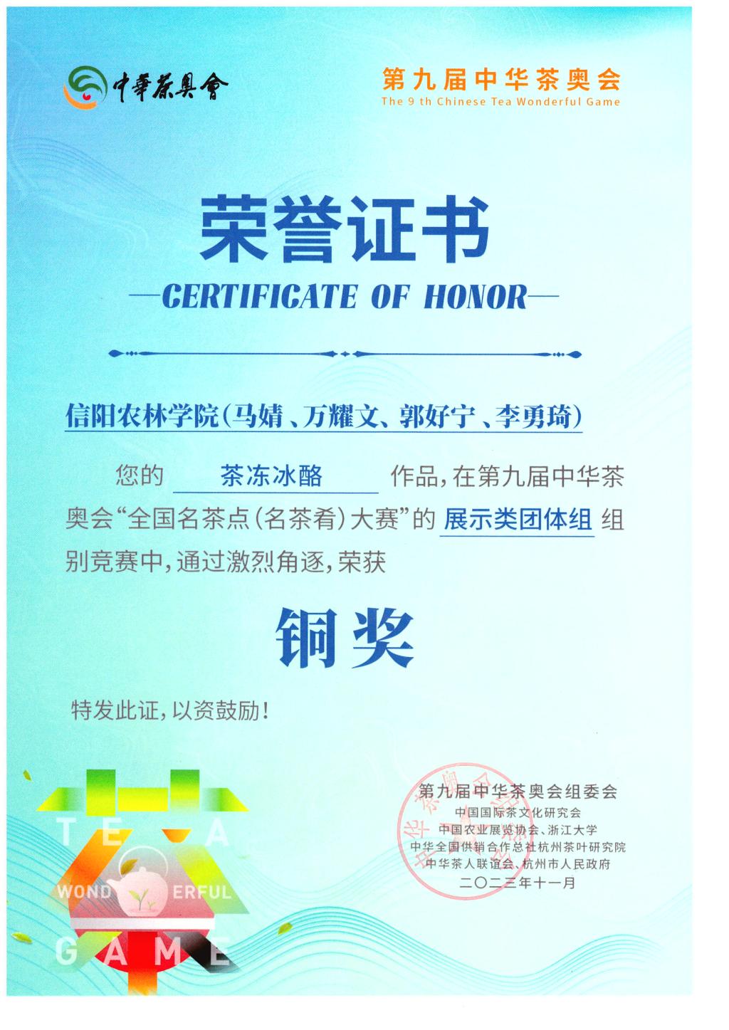 我院学子在第九届中华茶奥会中取得佳绩