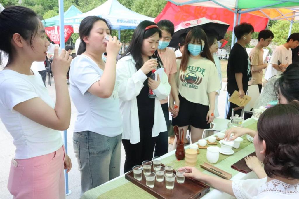 茶学院心理部的成员们精心布置了现场,营造一个温馨、轻松的氛围。他们通过摆放展板和小游戏的形式,向同学们传递了活动的主题和理念。活动紧密结合学院的专业特点——茶,设置了茶台,由茶艺社团的成员冲泡不同类型的茶,同学们品尝,从而以茶静心,以茶会友此外,还设置了很多小游戏,比如吹乒乓球、棋类游戏等,获胜同学可以抽奖,领取文具,在娱乐中享受当下的快乐。