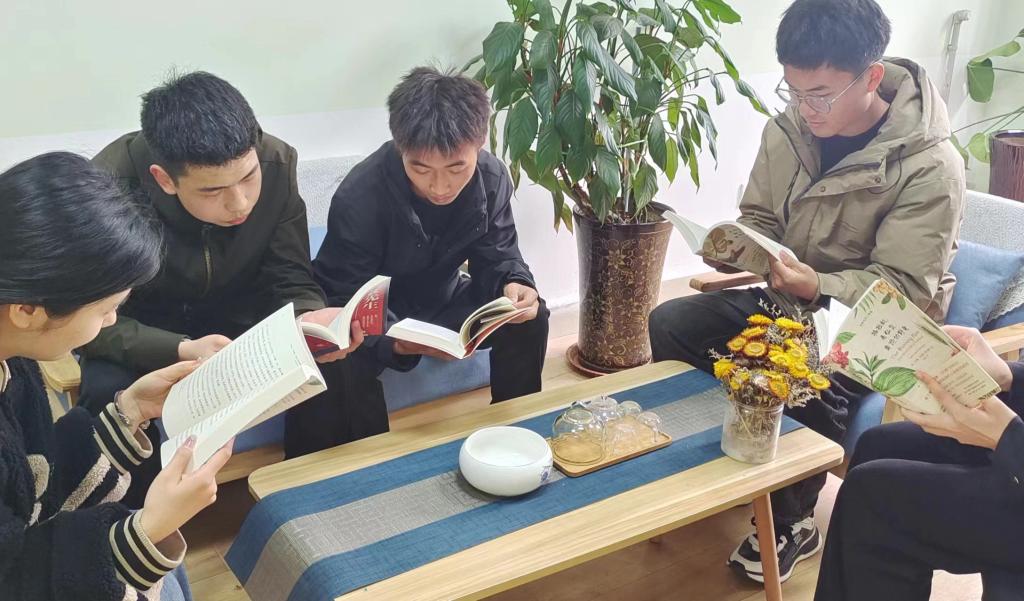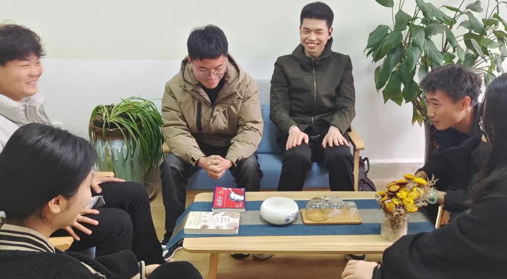 活动中,同学们参观了升级完成后的“茶语静心”心理咨询室,阅读了心理咨询室的书籍,并就各自阅读的体验和生活经历进行了分享,现场氛围活泼热闹。现场同学分享了《非暴力沟通》《真希望你也喜欢自己》等书,号召大家认识自己,以积极行动面对生活和人生,获得内心的平和、生活的热情。