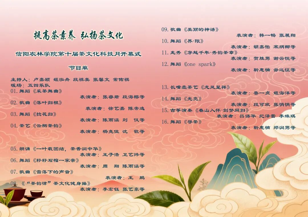 2025年11月11日下午,由茶学院和校团委主办的“弘扬茶文化,提高茶技能”——beat365在线平台官网第十届茶文化科技月开幕式及文艺演出在大学生活动中心举行。