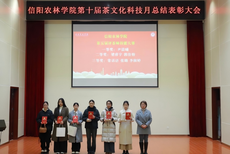 活动中,茶学院院长孙慕芳宣读了各项赛事评选结果和本届茶文化科技月优秀工作人员和优秀班级名单。学院班子成员为获奖学生颁发了奖品,并合影留念。
