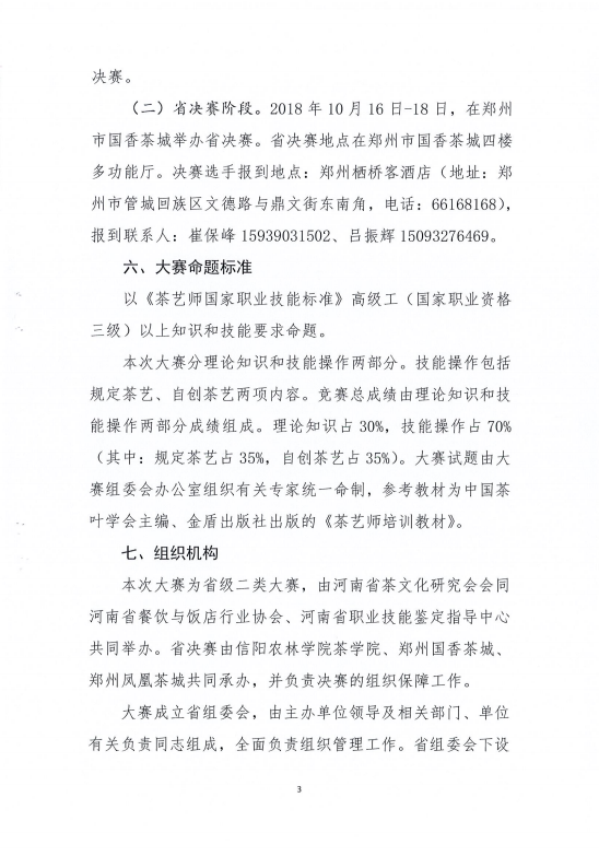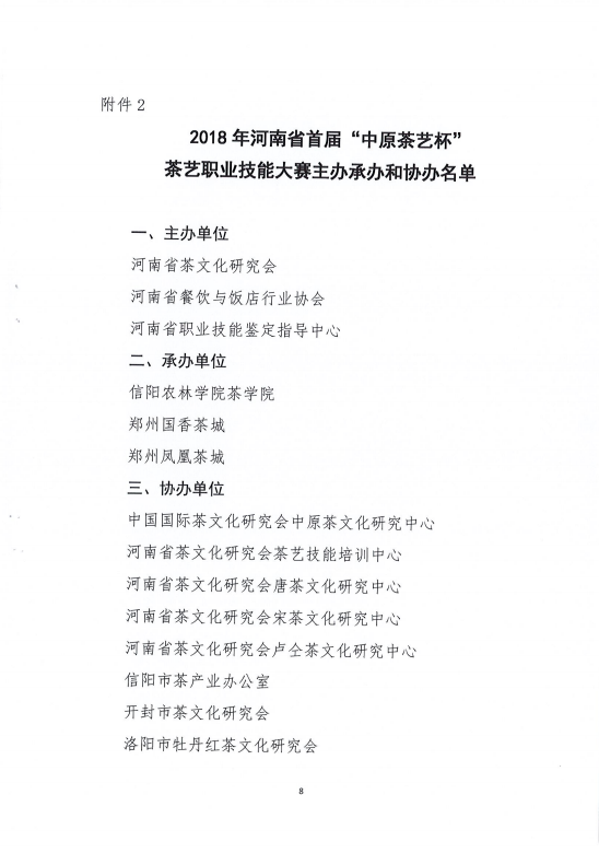2018年河南省首届“中原茶艺杯”茶艺职业技能竞赛通知文件