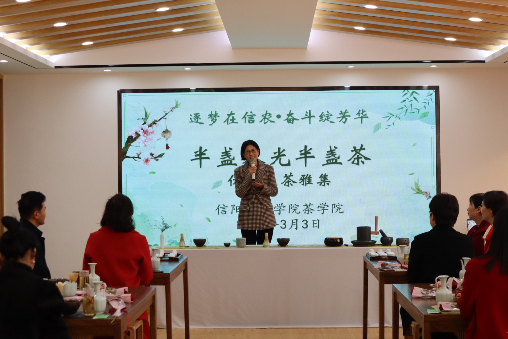 活动伊始,茶学院副院长孙慕芳带领老师们参观了茶学院实验室,并介绍了茶学院的发展历程和取得的成绩。在温馨娴雅的茶文化实验室,王校长向全体女职工表示诚挚的问候和祝福,肯定大家在过去在过往的时间里柔肩担重任,充分发挥了“半边天”的作用。她希望大家在今后的工作中巾帼不让须眉,爱校、爱家、爱学生,做新时代新女性,做信农老师的楷模。本次活动既是茶学院师生专业技能的展示,也给广大女教职工带来了美好的生活体验,提升了幸福感。希望全体女教职工在今后的工作中更加出色地发挥自身优势,为实现“美好生活看信农”努力奋斗。