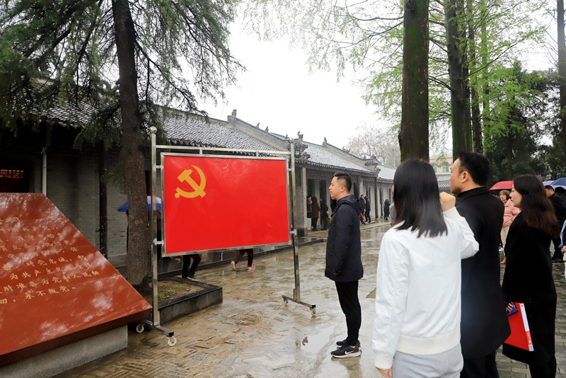 细雨霏霏,苍松翠柏在春雨中显得格外庄严肃穆。在细雨中,校团委孙羽佳老师首先介绍了豫南红色革命的摇篮和发源地,以及红色圣地柳林在民主革命时期发挥的重要作用。随后,丁志渊同学讲述了恽代英同志在柳林开办“互助社”传播星星之火的故事。在祝伟洋老师和李怡霏同学的带领下,在场党员和团员重温了入党和入团誓词,时刻牢记作为党员和团员的初心使命。