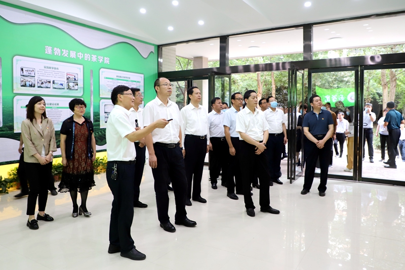 蔡松涛先后到园艺学院、制药工程学院、茶学院,了解学校特色优势专业建设发展及产学研工作开展情况,并看望慰问正在教学一线工作的教师。慰问现场,蔡松涛分别同国家级教学名师郭桂义教授、省脱贫攻坚先进个人王德芝教授、省级教学名师杨俊杰教授、师德标兵史雅洁老师亲切交流,关心他们的工作生活情况。