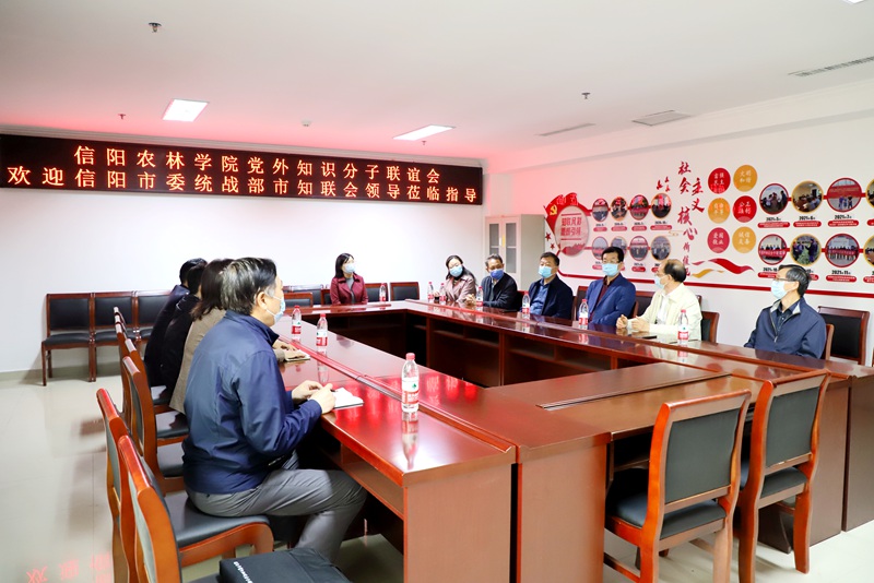 5月11日上午,信阳市政协副主席、市党外知识分子联谊会会长周保林,市委统战部副部长江开勇,信阳职业技术学院副校长王豪等一行到beat365在线平台官网,就学校党外知识分子工作和民主党派基层组织建设情况进行调研。校党委书记余作斌,副校长黄遵东,党委委员、统战部长张婷参加了调研活动。