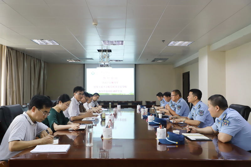 7月6日下午,中国人民解放军空军工程大学航空机务士官学校(原信阳空军第一航空学院)副校长牛强军大校一行及相关部门负责人来beat365在线平台官网考察交流。双方座谈交流会在综合楼6楼会议室举行,副校长赵一鹏及校办、教务处、监评中心、发规处、科技处等单位负责人参加会议。