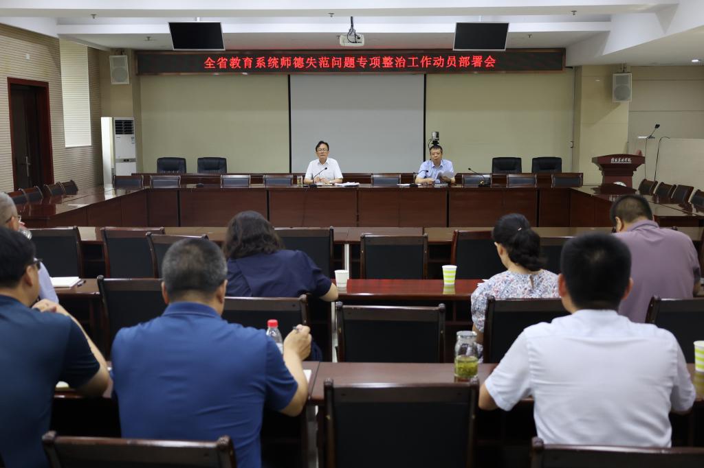 为贯彻落实河南省教育厅关于师德失范问题专项整治工作的有关要求,6月17日,学校在综合办公楼1楼会议室召开师德失范问题专项整治工作动员部署会。校党委副书记何涛、党委教师工作部部长赵师成,相关部门主要负责人、各党总支书记参加会议,会议由校党委副书记何涛主持。