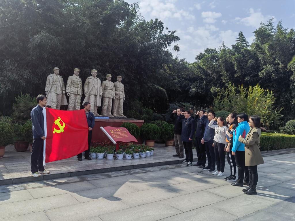 最后,党员同志在革命先烈雕塑前,面对党旗,重温了入党誓词,进一步提醒党员同志要时刻牢记党员的初心和使命。