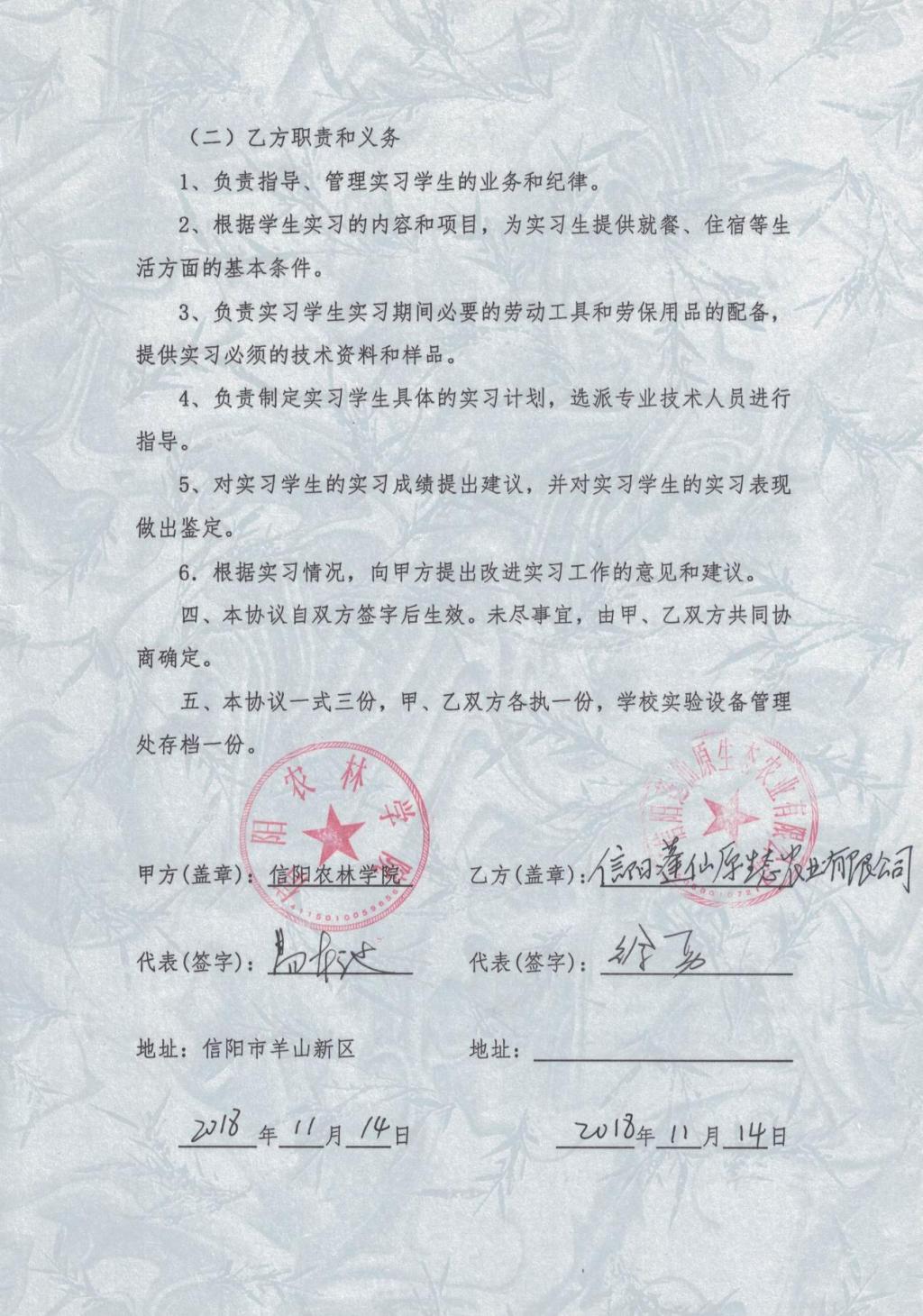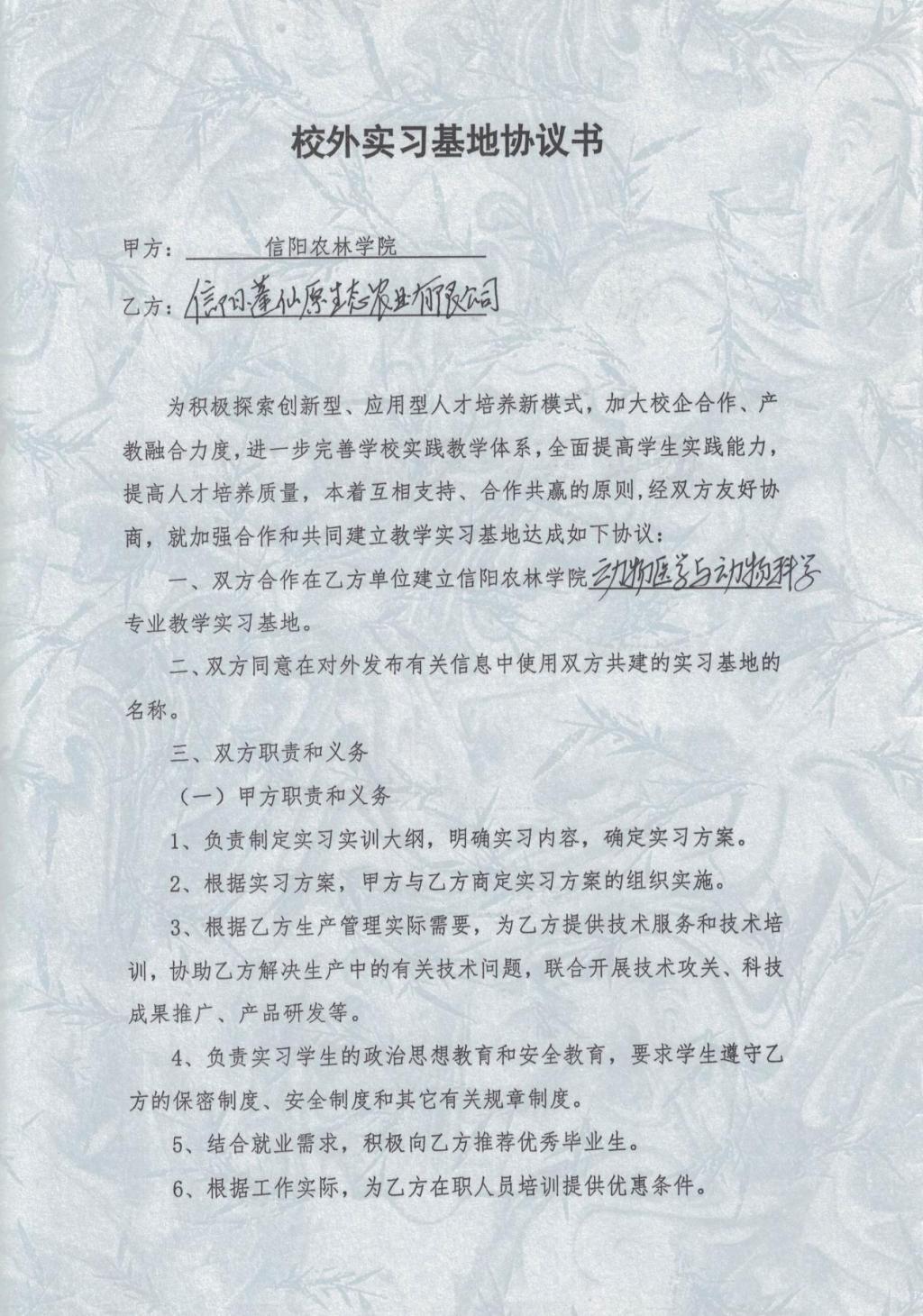 牧医工程学院校地合作企业——信阳篷仙原生态农业有限公司