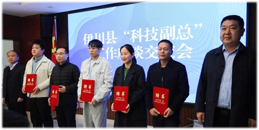 当日上午,伊川县科技局组织召开“科技副总”专题座谈会。副县长杨鹏辉为梁成成博士颁发聘书时强调:“科技副总”机制是破解企业技术瓶颈的金钥匙,希望校企双方建立常态化协作机制,在关键技术攻关、人才培养等方面形成示范效应"。梁博士表示将立足县域畜牧业发展实际,做好"技术经纪人"角色,推动创新链与产业链深度耦合。