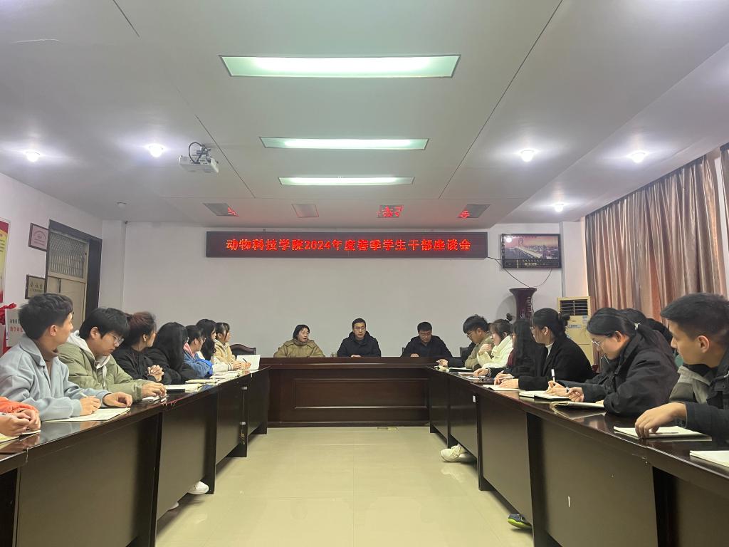 为进一步增强学生干部责任意识,全面发挥学生干部作用,推动学院学生教育管理和服务工作提质增效,动物科技学院于2024年3月8日在验楼2C313召开学生干部座谈会。学院党总支书记李建柱、党总支副书记吴海港、团总支书记张喜文、学工组老师及学院自我管理服务机构主要学生干部参加座谈。会议由张喜文主持。