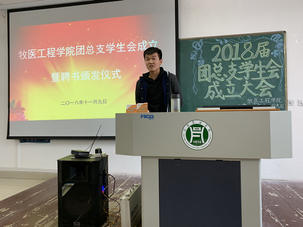 11月9日中午,牧医工程学院在二教103隆重举行2018届团总支学生会成立大会,大会由我院团总支书记张广强老师主持,辅导员刘容序老师、张喜文老师,新一届团总支学生会主席团成员与大一各班班委参加了此次会议。