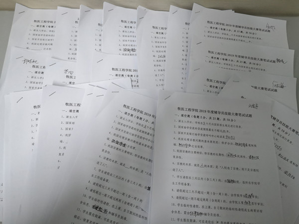 20191029日,牧医工程学院组织全体辅导员在院会议室举办了辅导员素质能力大赛初赛(笔试)环节。