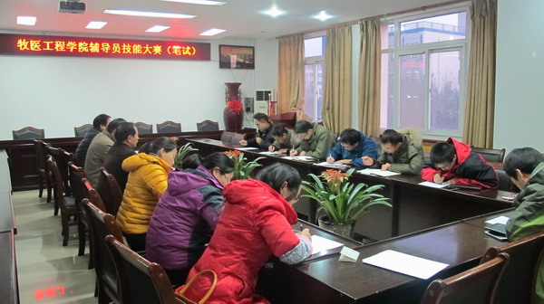 为进一步加强辅导员队伍建设、提高辅导员职业能力,提升大学生思想政治教育质量,根据学校辅导员职业技能大赛活动安排,11月25日,牧医工程学院全体辅导员老师,在会议室开展辅导员职业技能大赛笔试部分赛事。笔试内容涵盖辅导员工作职责、班级管理、学生管理条例、安全教育、素质拓展、创新创业、紧急情况处理等方面。下一步,我院还将开展主题班会视频展示环节竞赛。