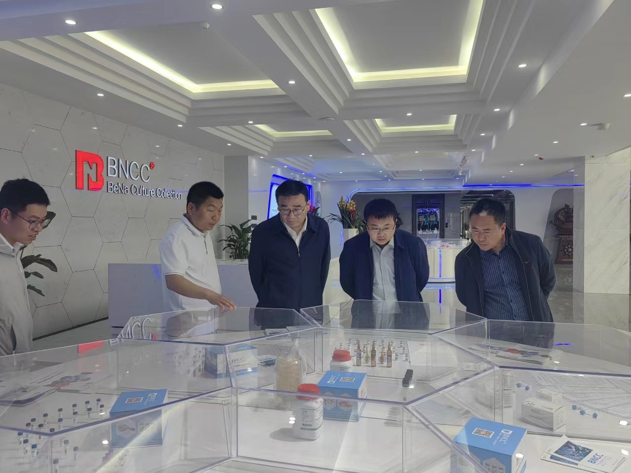 在座谈会上,北纳创联生物科技有限公司总经理何婷婷介绍了公司的发展过程,以及取得的各项重要研究成果。生产部实验室主任殷世腾介绍了公司产品系列及市场应用前景。邓凯伟院长表示,教学、科研和服务地方经济是高校的重要任务,校企合作也是提高学生培养质量重要途径。加强学校和企业的深入合作,教师融入企业可以助力企业的发展,另一方面也了解行业需求,为后续科研方向提供指导,也可提高自身教学能力,最终可实现学校和企业的双赢。今后,希望两方在教师参与企业研发、学生就业和校企共建课程方面积极开展深入合作。